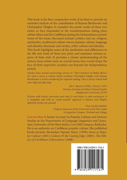 «Scholars have started constructing courses on 'The Literature of Global Africa'. For such a course a volume which combines Christopher Okigbo with Kamau Braithwaite is worth considering for required reading. Here is poetry which both soars high and digs deep.» (Ali A. Mazrui, D.Phil., (Oxon), C.B.S., Director, Institute of Global Cultural Studies, Binghamton University, SUNY)