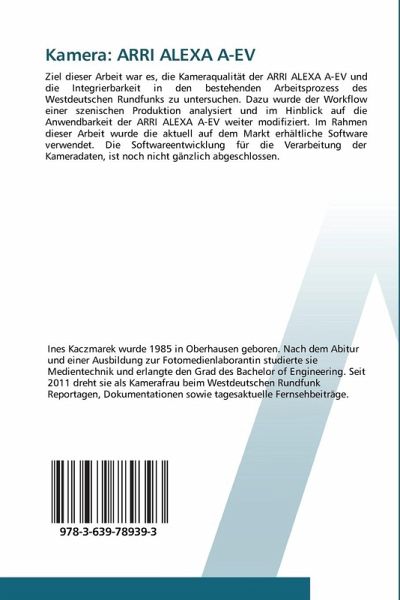 Ziel dieser Arbeit war es, die Kameraqualität der ARRI ALEXA A-EV und die Integrierbarkeit in den bestehenden Arbeitsprozess des Westdeutschen Rundfunks zu untersuchen. Dazu wurde der Workflow einer szenischen Produktion analysiert und im Hinblick auf die Anwendbarkeit der ARRI ALEXA A-EV weiter modifiziert. Im Rahmen dieser Arbeit wurde die aktuell auf dem Markt erhältliche Software verwendet. Die Softwareentwicklung für die Verarbeitung der Kameradaten, ist noch nicht gänzlich abgeschlossen.