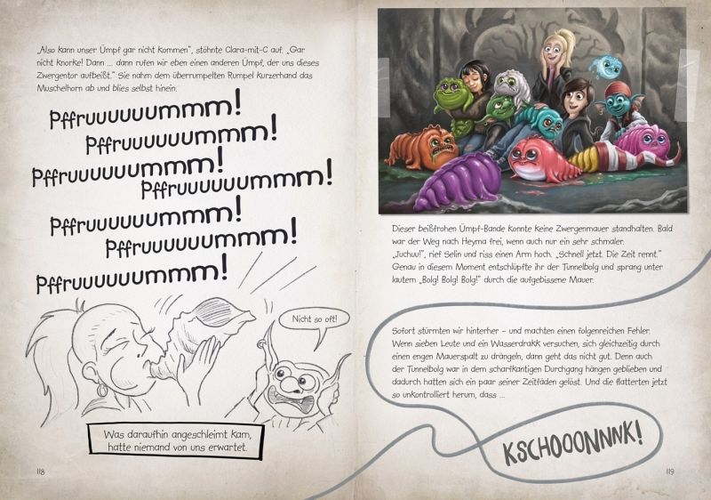 Es ist soweit: Es geht um die Rettung der Welt! Denn niemand Geringerer als die machthungrige Koboldprinzessin Azzrar lässt einen Drachen auf Kobolde und Menschen los. Krottenschrate kämpfen gegen Lehrer, das Chaos regiert ... Mooooooment. Passiert das wirklich? Oder ist es der Blick in eine düstere Zukunft, den Dario, Rumpel und ihre Abenteuergruppe an der Schule werfen? Mit Zeitreisen kennen sie sich ja mittlerweile aus und der silbrig-wuselnde Tunnelbolg ist aktiv wie nie zuvor...