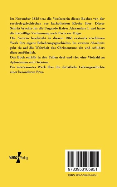 Im November 1815 trat die Verfasserin dieses Buches von der russisch-griechischen zur katholischen Kirche über. Dieser Schritt brachte ihr die Ungnade Kaiser Alexanders I. und hatte die freiwillige Verbannung nach Paris zur Folge.