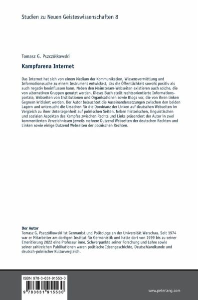 Das Internet hat sich von einem Medium der Kommunikation, Wissensvermittlung und Informationssuche zu einem Instrument entwickelt, das die Öffentlichkeit sowohl positiv als auch negativ beeinflussen kann. Neben den Mainstream-Webseiten existieren auch solche, die von alternativen Gruppen genutzt werden. Dieses Buch stellt rechtsorientierte Informationsportale, Webseiten von Institutionen und Organisationen sowie Blogs vor, die von ihren linken Gegnern kritisiert werden. Der Autor beleuchtet die Auseinandersetzungen zwischen den beiden Lagern und untersucht die Ursachen für die Dominanz der Linken auf deutschen Webseiten im Vergleich zu ihrer Unterlegenheit auf polnischen Seiten. Neben historischen, linguistischen und sozialen Aspekten des Kampfes zwischen Rechts und Links präsentiert der Autor in zwei kommentierten Verzeichnissen jeweils mehrere Dutzend Webseiten der deutschen Rechten und Linken sowie einige Dutzend Webseiten der polnischen Rechten.