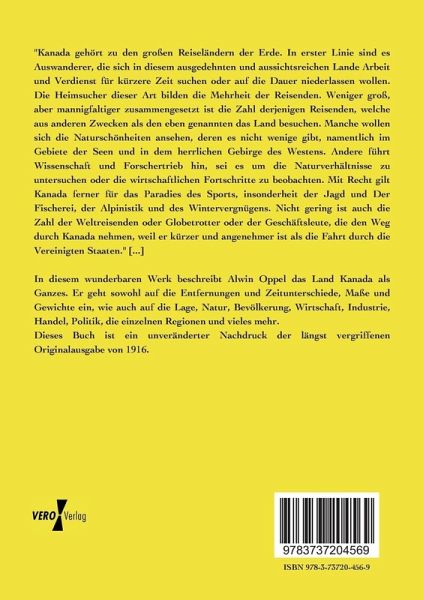 In diesem wunderbaren Werk beschreibt Alwin Oppel das Land Kanada als Ganzes. Er geht sowohl auf die Entfernungen und Zeitunterschiede, Maße und Gewichte ein, wie auch auf die Lage, Natur, Bevölkerung, Wirtschaft, Industrie, Handel, Politik, die einzelnen Regionen und vieles mehr.