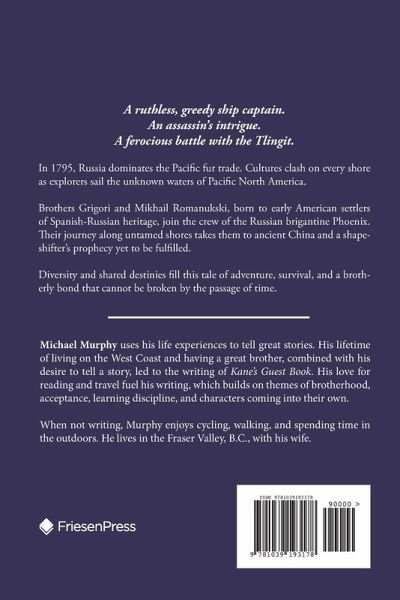 A ruthless, greedy ship captain. An assassin's intrigue. A ferocious battle with the Tlingit. In 1795, Russia dominates the Pacific fur trade. Cultures clash on every shore as explorers sail the unknown waters of Pacific North America. Brothers Grigori and Mikhail Romanukski, born to early American settlers of Spanish-Russian heritage, join the crew of the Russian brigantine Phoenix. Their journey along untamed shores takes them to ancient China and a shapeshifter's prophecy yet to be fulfilled. Diversity and shared destinies fill this tale of adventure, survival, and a brotherly bond that cannot be broken by the passage of time.