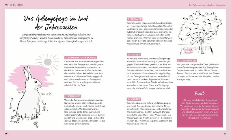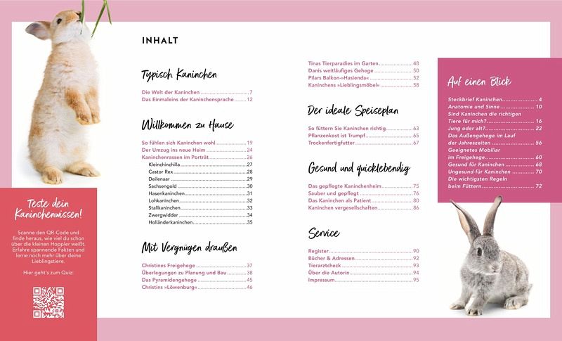 Die Autorin und Fotografin Monika Wegler gibt wertvolle Tipps, wie Sie Ihre Kaninchen abwechslungsreich beschäftigen können. Außerdem erhalten Sie praktischen Rat, falls es doch einmal zu Problemen bei der Haltung kommt. Der Verhaltensdolmetscher erklärt typische Verhaltensweisen der Kaninchen. Und mit dem Kapitel SOS - was tun? ist Hilfe im Notfall garantiert.