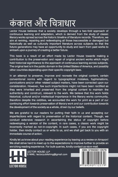 Kankaal Aur Chitradhar This book is a result of an effort made by us towards making a contribution to the preservation and repair of original classic literature. In an attempt to preserve, improve and recreate the original content, we have worked towards: 1. Type-setting & Reformatting: The complete work has been re-designed via professional layout, formatting and type-setting tools to re-create the same edition with rich typography, graphics, high quality images, and table elements, giving our readers the feel of holding a 'fresh and newly' reprinted and/or revised edition, as opposed to other scanned & printed (Optical Character Recognition - OCR) reproductions. 2. Correction of imperfections: As the work was re-created from the scratch, therefore, it was vetted to rectify certain conventional norms with regard to typographical mistakes, hyphenations, punctuations, blurred images, missing content/pages, and/or other related subject matters, upon our consideration. Every attempt was made to rectify the imperfections related to omitted constructs in the original edition via other references. However, a few of such imperfections which could not be rectified due to intentional\unintentional omission of content in the original edition, were inherited and preserved from the original work to maintain the authenticity and construct, relevant to the work. We believe that this work holds historical, cultural and/or intellectual importance in the literary works community, therefore despite the oddities, we accounted the work for print as a part of our continuing effort towards preservation of literary work and our contribution towards the development of the society as a whole, driven by our beliefs. We are grateful to our readers for putting their faith in us and accepting our imperfections with regard to preservation of the historical content. HAPPY READING!