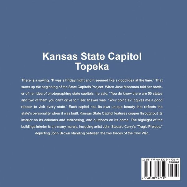 Journey Across America's Heart and Heritage In State Capitols: America's Beating Heart, celebrated photographer and adventurer Jane Moorman captures the grandeur, history, and unique beauty of America's state capitols. From the classical halls of New England to the intricate details of the Midwest's copper domes, each statehouse tells a story of its people, values, and journey to statehood. Through vibrant images and insightful commentary, Moorman brings to life these architectural marvels that echo with the voices of past legislators, activists, and ordinary citizens. With a career spanning over three decades as a photojournalist, Moorman's lens reveals details that others might miss: the hidden murals, worn steps, and stately chambers where history was made. Whether exploring the echoes of Bleeding Kansas, capturing the quiet resilience of the Ad Astra statue, or chronicling the evolution of civil rights memorials, this book is both a travelogue and a testament to America's rich, diverse story. Perfect for lovers of history, architecture, and photography, State Capitols invites readers to see America through the eyes of an adventurer who believes there's beauty in every corner of this vast country.