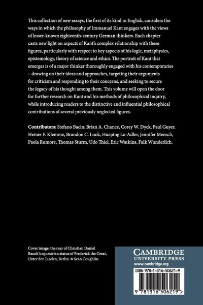 A detailed and innovative study of Kant's engagement with the ideas and methods of previously neglected philosophical figures in eighteenth-century Germany.