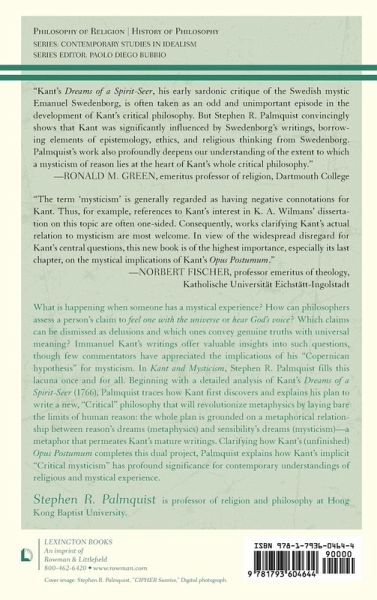 Preface Introduction: The Problem of Mystical Experience in Kant Part I Swedenborg's Influence on Kant's Critical Awakening Chapter 1 - The Copernican Hypothesis as the Key to Kant's Awakening from Dogmatic Slumber Chapter 2 - The Impact of Swedenborg's Mysticism on Kant's Metaphysical Dreams Chapter 3 - Kant's Awakening: The Copernican Hypothesis as the Key to Critical Mysticism Chapter 4 - Kant's Metaphysical Dream: A System of Critical Philosophy Part II Kant's Critical Philosophy as a Critique of Mysticism Chapter 5 - Does Mystical Experience Always Prompt Delirium? Chapter 6 - Kant's Critique of Delirious Mysticism Chapter 7 - Critical Mysticism as Immediate Experience of the Moral Chapter 8 - Key Metaphors Guiding Kant's Critical Mysticism Part III The Opus Postumum as an Experiment in Critical Mysticism Chapter 9 - Can the Original (Threefold) Synthesis Be Consciously Experienced? Chapter 10 - The Categorical Imperative as the Voice of God Chapter 11 - Matter's Living Force