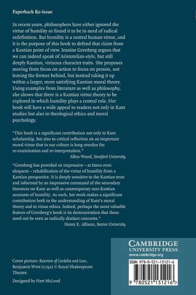 In previous years, philosophers have either ignored the virtue of humility or found it to be in need of radical redefinition. But humility is a central human virtue, and it is the purpose of this book to defend that claim from a Kantian point of view. Jeanine Grenberg argues that we can indeed speak of Aristotelian-style, but still deeply Kantian, virtuous character traits. She proposes moving from focus on action to focus on person, not leaving the former behind, but instead taking it up within a larger, more satisfying Kantian moral theory. Using examples from literature as well as philosophy, she shows that there is a Kantian virtue theory to be explored in which humility plays a central role. Her book will have a wide appeal to readers not only in Kant studies but also in theological ethics and moral psychology.