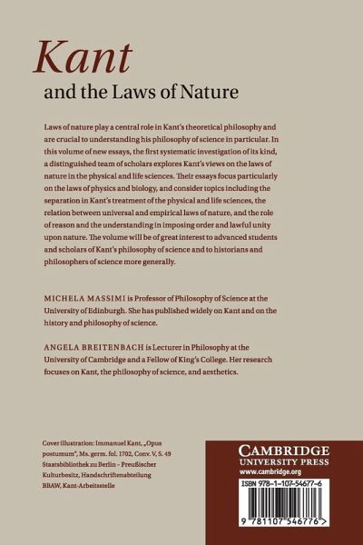 This is the first systematic investigation of Kant's treatment of the laws of nature, which are central to his philosophy of science. It will be of great interest to advanced students and scholars of Kant's philosophy of science, and to historians and philosophers of science more generally.