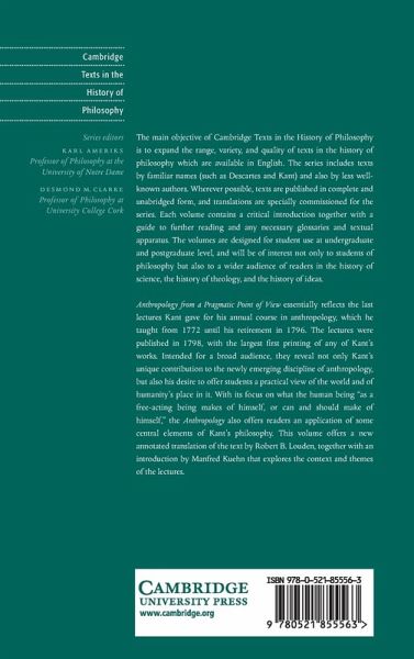 Anthropology from a Pragmatic Point of View is Kants last set of lecture notes for his annual course in anthropology, which he taught from 1772 until his retirement in 1796. Intended for a broad audience, it reveals not only Kants unique contribution to the newly emerging discipline of anthropology, but also his desire to offer students a practical view of the world and of humanitys place in it. This volume offers a new annotated translation of the text by Robert B. Louden, together with an introduction by Manfred Kuehn.