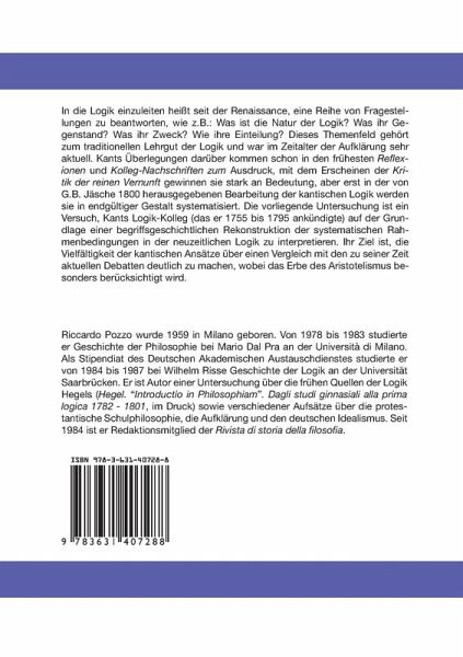 In die Logik einzuleiten heisst seit der Renaissance, eine Reihe von Fragestellungen zu beantworten, wie z.B.: Was ist die Natur der Logik? Was ihr Gegenstand? Was ihr Zweck? Wie ihre Einteilung? Dieses Themenfeld gehört zum traditionellen Lehrgut der Logik und war im Zeitalter der Aufklärung sehr aktuell. Kants Überlegungen dazu kommen schon in den frühesten Reflexionen und Kolleg-Nach- schriften zum Ausdruck, mit dem Erscheinen der Kritik der reinen Vernunft gewinnen sie stark an Bedeutung, aber erst in der von G.B. Jäsche 1800 herausgegebenen Bearbeitung der kantischen Logik werden sie in endgültiger Gestalt systematisiert. Die vorliegende Untersuchung ist ein Versuch, Kants Logik-Kolleg (das er 1755 bis 1795 ankündigte) auf der Grundlage einer begriffsgeschichtlichen Rekonstruktion der systematischen Rahmenbedingungen in der neuzeitlichen Logik zu interpretieren. Ihr Ziel ist, die Vielfältigkeit der kantischen Ansätze über einen Vergleich mit den zu seiner Zeit aktuellen Debatten deutlich zu machen, wobei das Erbe des Aristotelismus besonders berücksichtigt wird.