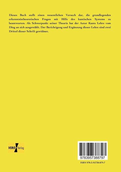 Dieses Buch stellt einen wesentlichen Versuch dar, die grundlegenden erkenntnistheoretischen Fragen mit Hilfe des kantischen Systems zu beantworten. Als Schwerpunkt seiner Theorie hat der Autor Kants Lehre vom Ding an sich ausgewählt. Der Berichtigung und Ergänzung dieser Lehre sind zwei Drittel dieser Schrift gewidmet.