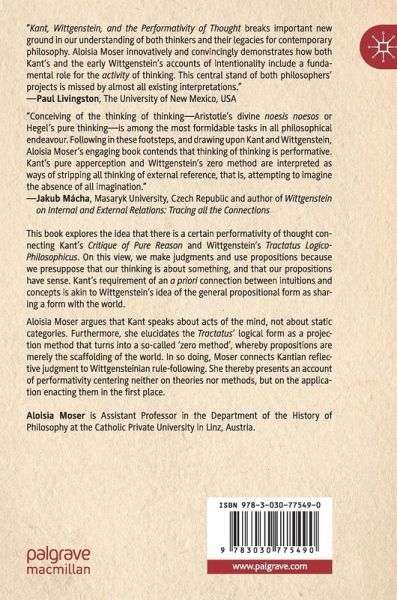 This book explores the idea that there is a certain performativity of thought connecting Kant's Critique of Pure Reason and Wittgenstein's Tractatus Logico-Philosophicus. On this view, we make judgments and use propositions because we presuppose that our thinking is about something, and that our propositions have sense. Kant's requirement of an a priori connection between intuitions and concepts is akin to Wittgenstein's idea of the general propositional form as sharing a form with the world.
