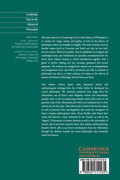 This volume collects Kant's ethical and anthropological writings from the 1760s, before he developed his critical philosophy. It includes previously untranslated and difficult to access material such as the Remarks Kant wrote in his copy of the Observations, and reveals Kant's progression towards the philosophy that eventually made him famous.