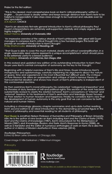 'Kant is an absolutely first-rate general introduction to Kant's Critical Philosophy. Paul Guyer's interpretations are extremely well-supported, carefully and crisply argued, and highly insightful.' - Robert Hanna, University of Colorado, USA