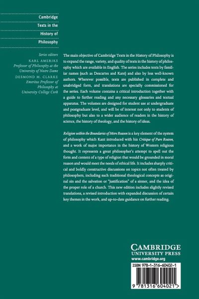 Religion within the Boundaries of Mere Reason addresses religious issues about sin and salvation, as Kant explores a type of religion grounded in moral reason. This edition, with an updated introduction and revised translations, is ideal for students interested in the philosophy of religion, the history of modern philosophy, and theology.