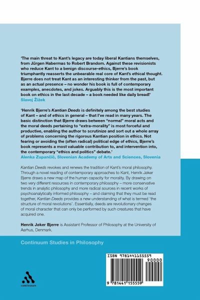 Kantian Deeds revokes and renews the tradition of Kant's moral philosophy. Through a novel reading of contemporary approaches to Kant, Henrik Bjerre draws a new map of the human capacity for morality. Morality consists of two different abilities that are rarely appreciated at the same time. Human beings are brought up and initiated into a moral culture, which gives them the cognitive mapping necessary to act morally and responsibly. They also, however, acquire an ability to reach beyond that which is considered moral and thus develop an ability to reinterpret or break 'normal' morality. By drawing on two very different resources in contemporary philosophy - more conservative trends in analytic philosophy and more radical sources in recent works of psychoanalytically informed philosophy - and claiming that they must be read together, Kantian Deeds provides a new understanding of what is termed 'the structure of moral revolutions'. Essentially, deeds are revolutionary changes of moral character that can only be performed by such creatures that have acquired one.