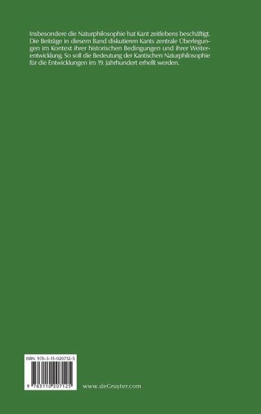 Die Beiträge in diesem Band diskutieren Kants zentrale Überlegungen zur Naturphilosophie jeweils im Kontext ihrer historischen Bedingungen und ihrer Weiterentwicklung. So soll die Bedeutung der kantischen Naturphilosophie für die Entwicklungen im 19. Jahrhundert erhellt werden.
