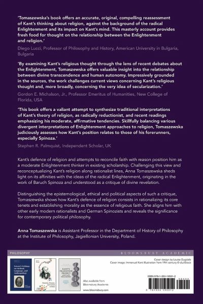 Kant's defence of religion and attempts to reconcile faith with reason position him as a moderate Enlightenment thinker in existing scholarship. Challenging this view and reconceptualising Kant's religion along rationalist lines, Anna Tomaszewska sheds light on its affinities with the ideas of the radical Enlightenment, originating in the work of Baruch Spinoza and understood as a critique of divine revelation. Distinguishing the epistemological, ethical and political aspects of such a critique, Tomaszewska shows how Kant's defence of religion consists of rationalizing its core tenets and establishing morality as the essence of religious faith. She aligns him with other early modern rationalists and German Spinozists and reveals the significance for contemporary political philosophy. Providing reasons for prioritizing freedom of thought, and hence religious criticism, over an unqualified freedom of belief, Kant's theology approximates the secularising tendency of the radical Enlightenment. Here is an understanding of how the shift towards a secular outlook in Western culture was shaped by attempts to rationalize rather than uproot Christianity.