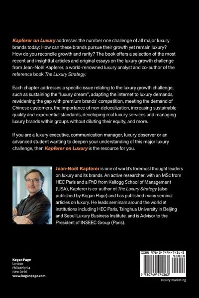 Jean-Noël Kapferer is an expert on brand management. His books The New Strategic Brand Management and The Luxury Strategy (Kogan Page) are key reference works for MBA programs worldwide. He holds the Pernod-Ricard Chair on Prestige and Luxury Management at HEC Paris. Also a consultant, he is a member of the board of a major luxury brand, and frequently gives executive seminars on luxury in Paris, China, the US, Japan, Korea and India.