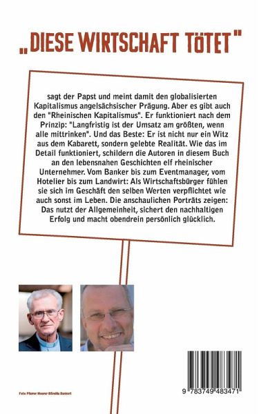 "Diese Wirtschaftet tötet", sagt der Papst und meint damit den globalisierten Kapitalismus angelsächsischer Prägung. Aber es gibt auch den "Rheinischen Kapitalismus". Er funktioniert nach dem Prinzip: "Langfristig ist der Umsatz am größten, wenn alle mittrinken". Und das Beste: Er ist nicht nur ein Witz aus dem Kabarett, sondern gelebte Realität. Wie das im Detail funktioniert, schildern die Autoren in diesem Buch an den lebensnahen Geschichten elf rheinischer Unternehmer. Vom Banker bis zum Eventmanager, vom Hotelier bis zum Landwirt: Als Wirtschaftsbürger fühlen sie sich im Geschäft den selben Werten verpflichtet wie auch sonst im Leben. Die anschaulichen Porträts zeigen: Das nutzt der Allgemeinheit, sichert den nachhaltigen Erfolg und macht obendrein persönlich glücklich.