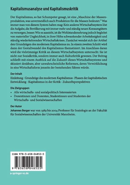Der Kapitalismus, so hat Schumpeter gesagt, ist eine"Maschine der Massenproduktion, was unvermeidlich auch Produktion für die Massen bedeutet." Was immer man von diesem System halten mag: Kein anderes Wirtschaftssystem löst die Aufgabe, die Bevölkerung mit immer mehr und ständig neuen Konsumgütern zu versorgen, besser. Wie es aussieht, ist die Wohlstandsmehrung jedoch begleitet von materieller Ungleichheit, in ihrer Höhe schwankender Arbeitslosigkeit und ständig wiederkehrenden Wirtschaftskrisen. Zunächst wendet sich der Artikel den Grundzügen des modernen Kapitalismus zu. In einem zweiten Schritt wird dann der Gestaltwandel des Kapitalismus thematisiert. Im Anschluss daran wird die vielstimmige Kritik an diesem Wirtschaftssystem untersucht. Sie ist nicht nur Sozialkritik, sondern immer auch Kulturkritik gewesen. Der Beitrag schließt mit einem Ausblick auf die Zukunft dieses Wirtschaftssystems und skizziert denkbare, aber unwahrscheinliche Reformen, deren Verwirklichung in eine Wirtschaftsform jenseits der bestehenden führen würde.