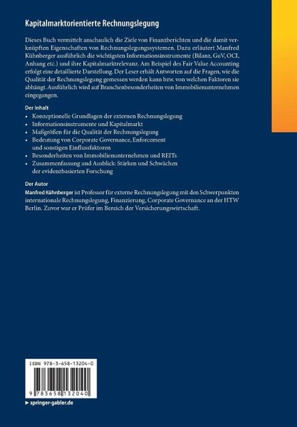 Dieses Buch vermittelt anschaulich die Ziele von Finanzberichten und die damit verknüpften Eigenschaften von Rechnungslegungssystemen. Dazu erläutert der Autor ausführlich die wichtigsten Informationsinstrumente (Bilanz, GuV, OCI, Anhang etc.) und ihre Kapitalmarktrelevanz. Am Beispiel des Fair Value Accounting wird dies erläutert. Der Leser erhält Antworten auf die Fragen, wie die Qualität der Rechnungslegung gemessen werden kann bzw. von welchen Faktoren sie abhängt. Ausführlich wird auf Branchenbesonderheiten von Immobilienunternehmen eingegangen.