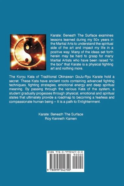 This book is for Martial Artists, who train their bodies and minds but have yet to find the spirit that lies deep within their art. Martial Arts are brutal and deadly forms of fighting, however, they also contain the potential to go beyond the surface of skin and bones defensive and aggressive physical techniques, by tapping into a well of emotional and spiritual energy that strengthens the physical motion, while elevating character and personal growth. Most traditional Martial Arts schools contain Kata as part of their curriculum. A Kata is a dance-like pattern of fighting techniques containing specific hand and foot positions and movements, specific breathing patterns, vocalizations, and visualization of imaginary opponents. Physical, emotional and spiritual energies are generated, absorbed, redirected and projected. Kata is essentially a combat based energy management system. Students learn the Kata in a systematic approach where each progressing Kata is more difficult than the previous one. It takes many years to master all of the intricate movements and fighting strategies contained in the Kata. These Kata have ancient roots containing advanced fighting techniques, fighting strategies and deep spiritual meaning. By passing through the various Kata of the system, a student gradually progresses through physical, emotional and spiritual states that ultimately provide a roadmap to becoming a fearless and compassionate human being; a person who can give freely, because he can fight and is not afraid of losing anything, including his life. The rigorous training Martial Artists suffer through, as we learn to fight by mastering the Kata, elevates our character as we overcome our physical, emotional and spiritual limitations. The lessons we learn through training increase our compassion as we teach our juniors, who are themselves suffering through the training. By embracing and extending compassion we can end our own and others suffering, and make a positive difference in the world. The purpose of studying Karate is not to learn how to fight. Fighting is only a means to an end. The purpose is to become compassionate. You must be fearless to be truly compassionate. This is the promise and final end-goal of traditional Martial Arts and Okinawan GoJu-Ryu Karate and is sadly missing in the arts as practiced today. What others are saying: "Karate: Beneath The Surface is a work of uncommon honesty and self-discovery. A refreshingly candid examination of one man's journey to understand the spiritual that lies beyond the implicit violence of Martial Arts." - Robert Mark Kamen - Creator of "The Karate Kid" "Kamen’s work is not the judgment of a Martial Master on the techniques and applications of Kata and Karate. Rather, it is a personal narrative about a spiritual path of Kata that is transformative - growth gained, not by infusing new principles or concepts, but rather, by uncovering sacred elements that have been within each of us from our beginnings." - Gary Gabelhouse - Karate Student, World Explorer, Published Author "This is an extremely honest account of one man's journey through karate, and the discoveries he has found along the way. Packed with first-hand accounts, it will cause those who read it to question the true purpose of kata within their own karate practice." - Garry Lever - Jissokan Goju Ryu About the Author: Roy Kenneth Kamen has studied Karate since 1965. He earned his second-degree black belt in Traditional Okinawan GoJu-Ryu Karate and a first-degree black belt in Okinawan Kobudo from Master Seikichi Toguchi, a first-generation student of the founder of GoJu-Ryu, Grand Master Chojun Miyagi, in 1980. Mr. Kamen currently holds an eighth-degree black belt and trains with Chi-I-Do International in New York City.