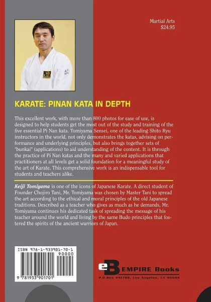 This excellent work, with more than 800 photos for ease of use, is designed to help students get the most out of the study and training of the five essential Pi Nan kata. Tomiyama Sensei, one of the leading Shito Ryu instructors in the world, not only demonstrates the katas, advising on performance and underlying principles, but also brings together sets of "bunkai" (applications) to aid understanding of the content. It is through the practice of Pi Nan katas and the many and varied applications that practitioners at all levels get a solid foundation for a meaningful study of the art of Karate. This comprehensive work is an indispensable tool for students and teachers alike.