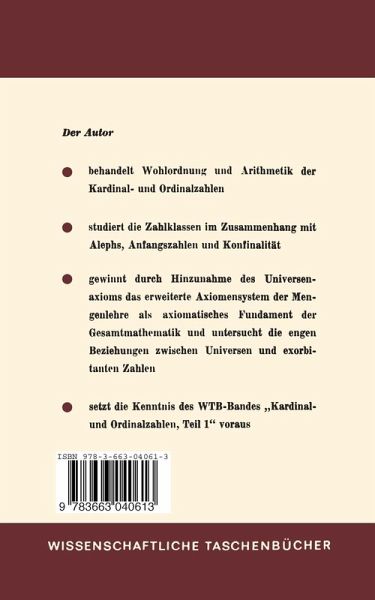 Der vorliegende zweite Teil IIIJ2 von Band III "Kardi nal-und Ordinalzahlen" des Buches "Einführung in die Allgemeine Mengenlehre" ist die unmittelbare Fort setzung des ersten Teiles IIIJ1, der damit für das Ver ständnis von IIIJ2 edorderlich ist und dessen Vorwort den gesamten Band III einbezieht. Berlin, Februar 1974 D.KLAUA Inhaltsverzeichnis KAPITEL II Kardinal-und Ordinalzahlen