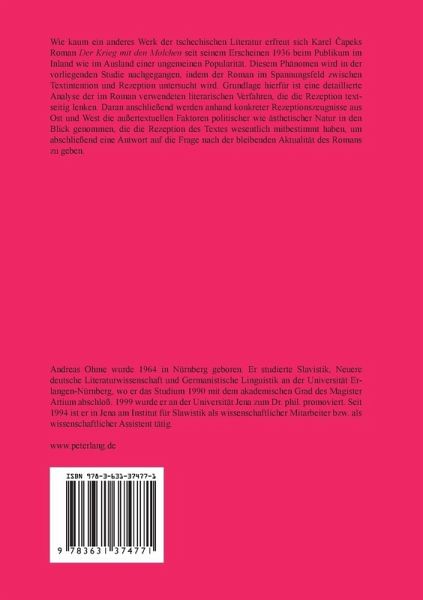 Wie kaum ein anderes Werk der tschechischen Literatur erfreut sich Karel Capeks Roman Der Krieg mit den Molchen seit seinem Erscheinen 1936 beim Publikum im Inland wie im Ausland einer ungemeinen Popularität. Diesem Phänomen wird in der vorliegenden Studie nachgegangen, indem der Roman im Spannungsfeld zwischen Textintention und Rezeption untersucht wird. Grundlage hierfür ist eine detaillierte Analyse der im Roman verwendeten literarischen Verfahren, die die Rezeption textseitig lenken. Daran anschließend werden anhand konkreter Rezeptionszeugnisse aus Ost und West die außertextuellen Faktoren politischer wie ästhetischer Natur in den Blick genommen, die die Rezeption des Textes wesentlich mitbestimmt haben, um abschließend eine Antwort auf die Frage nach der bleibenden Aktualität des Romans zu geben.