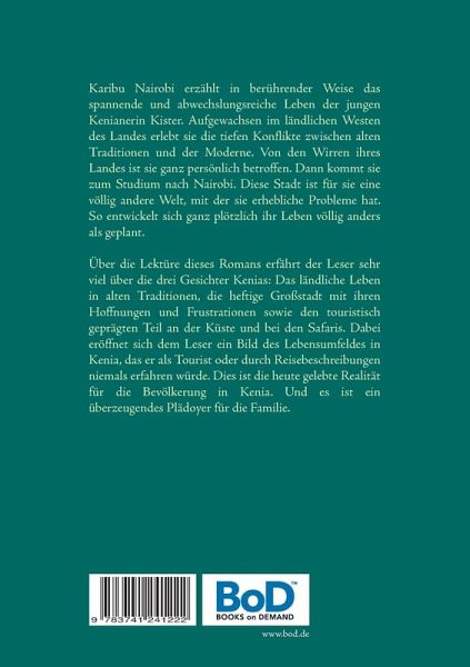 Karibu Nairobi erzählt in berührender Weise das spannende und abwechslungsreiche Leben der jungen Kenianerin Kister. Aufgewachsen im ländlichen Westen des Landes erlebt sie die tiefen Konflikte zwischen alten Traditionen und der Moderne. Von den Wirren ihres Landes ist sie ganz persönlich betroffen. Dann kommt sie zum Studium nach Nairobi. Diese Stadt ist für sie eine völlig andere Welt, mit der sie erhebliche Probleme hat. So entwickelt sich ganz plötzlich ihr Leben völlig anders als geplant.Über die Lektüre dieses Romans erfährt der Leser sehr viel über die drei Gesichter Kenias: Das ländliche Leben in alten Traditionen, die heftige Großstadt mit ihren Hoffnungen und Frustrationen sowie den touristisch geprägten Teil an der Küste und bei den Safaris. Dabei eröffnet sich dem Leser ein Bild des Lebensumfeldes in Kenia, das er als Tourist oder durch Reisebeschreibungen niemals erfahren würde. Dies ist die heute gelebte Realität für die Bevölkerung in Kenia. Und es ist ein überzeugendes Plädoyer für die Familie.