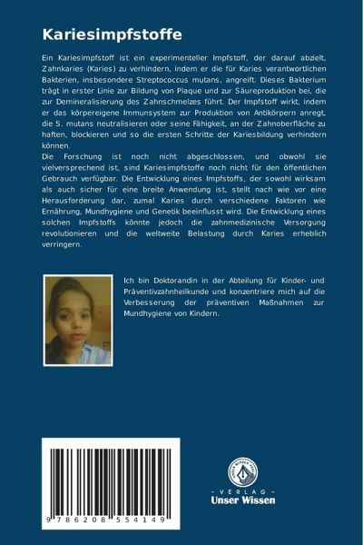 Ein Kariesimpfstoff ist ein experimenteller Impfstoff, der darauf abzielt, Zahnkaries (Karies) zu verhindern, indem er die für Karies verantwortlichen Bakterien, insbesondere Streptococcus mutans, angreift. Dieses Bakterium trägt in erster Linie zur Bildung von Plaque und zur Säureproduktion bei, die zur Demineralisierung des Zahnschmelzes führt. Der Impfstoff wirkt, indem er das körpereigene Immunsystem zur Produktion von Antikörpern anregt, die S. mutans neutralisieren oder seine Fähigkeit, an der Zahnoberfläche zu haften, blockieren und so die ersten Schritte der Kariesbildung verhindern können.Die Forschung ist noch nicht abgeschlossen, und obwohl sie vielversprechend ist, sind Kariesimpfstoffe noch nicht für den öffentlichen Gebrauch verfügbar. Die Entwicklung eines Impfstoffs, der sowohl wirksam als auch sicher für eine breite Anwendung ist, stellt nach wie vor eine Herausforderung dar, zumal Karies durch verschiedene Faktoren wie Ernährung, Mundhygiene und Genetik beeinflusst wird. Die Entwicklung eines solchen Impfstoffs könnte jedoch die zahnmedizinische Versorgung revolutionieren und die weltweite Belastung durch Karies erheblich verringern.
