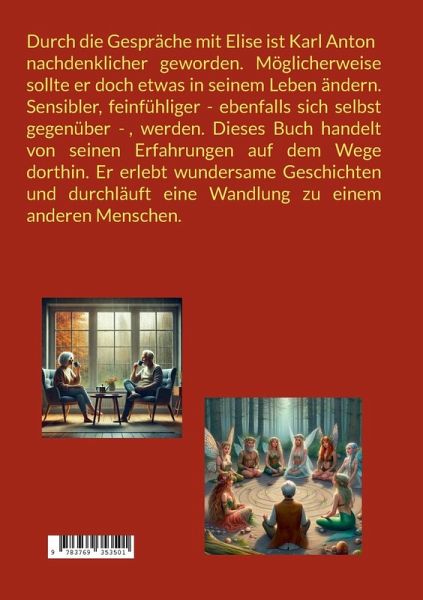 Durch die Gespräche mit Elise ist Karl Anton nachdenklicher geworden. Möglicherweise sollte er doch etwas in seinem Leben ändern. Sensibler, feinfühliger - ebenfalls sich selbst gegenüber -, werden. Dieses Buch handelt von seinen Erfahrungen auf dem Wege dorthin. Er erlebt wundersame Geschichten und durchläuft eine Wandlung zu einem anderen Menschen.