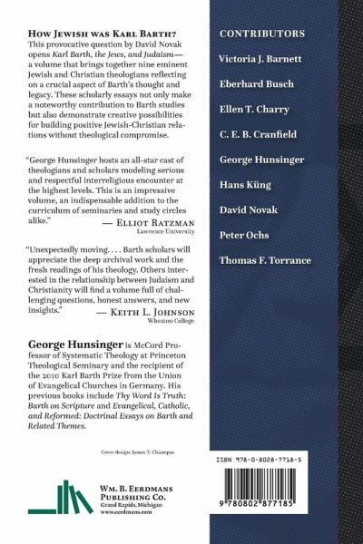 How Jewish was Karl Barth? This provocative question by David Novak opens Karl Barth, the Jews, and Judaism—a volume that brings together nine eminent Jewish and Christian theologians reflecting on a crucial aspect of Barth’s thought and legacy. These scholarly essays not only make a noteworthy contribution to Barth studies but also demonstrate creative possibilities for building positive Jewish-Christian relations without theological compromise. Contributors & Topics David Novak on the extent to which Barth thought like a Jew Eberhard Busch on three Jewish-Christian milestones in Barth’s life George Hunsinger on Christian philo-Semitism and supersessionism Peter Ochs on Barthian elements in Jewish-Christian dialogue Victoria J. Barnett on Barth and post-WWII interfaith encounters Thomas F. Torrance on Israel’s divine calling in world history C. E. B. Cranfield on Pauline texts pertinent to Jewish-Christian relations Hans Küng on moving from anti-Semitism to theological dialogue Ellen T. Charry on addressing theological roots of enmity