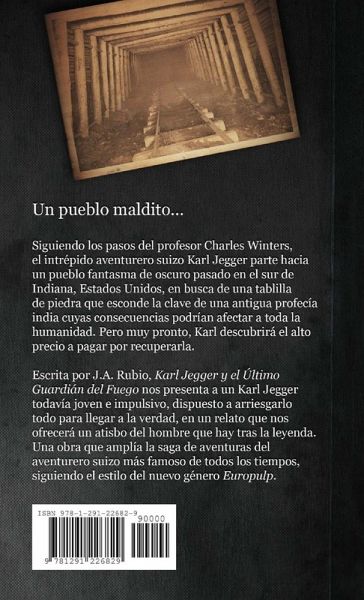 Siguiendo los pasos del profesor Charles Winters, el intrépido aventurero suizo Karl Jegger parte hacia un pueblo fantasma de oscuro pasado en el sur de Indiana, Estados Unidos, en busca de una tablilla de piedra que esconde la clave de una antigua profecía india cuyas consecuencias podrían afectar a toda la humanidad. Muy pronto, Karl descubrirá el alto precio a pagar por recuperarla. Escrita por J.A. Rubio, Karl Jegger y el Último Guardián del Fuego nos presenta a un Karl Jegger todavía joven e impulsivo, dispuesto a arriesgarlo todo para llegar a la verdad, en un relato que nos ofrecerá un atisbo del hombre que hay tras la leyenda. Una obra que amplía la saga de aventuras del aventurero suizo más famoso de todos los tiempos, siguiendo el estilo del nuevo género Europulp.