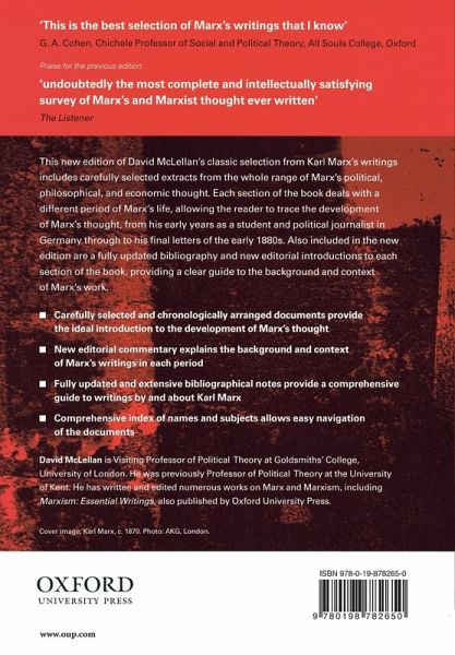 David McLellan is Professor of Political Theory at the University of Kent. He has written and edited numerous works on Marx and Marxism, including Marxism: Essential Writings, also published by Oxford University Press.