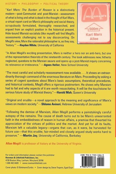 Why did Karl Marx want to exclude politics and the market from his vision of a future socialism? Allan Megill begins with this question. In answering it, he forces the reader to rethink Marx's entire intellectual project. Karl Marx: The Burden of Reason has important implications for how we think about the usability of Marx's work today. It will be of interest both to those who wish to reflect on the fate of Marxism during the era of Soviet Communism, and to those who wish to discern what is adequate and what requires replacement or supplementation in the work of a figure who, in spite of everything, remains one of the greatest philosophers and social scientists of the modern world.