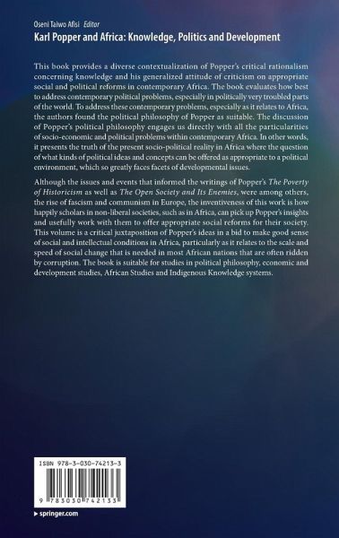 This book provides a diverse contextualization of Popper's critical rationalism concerning knowledge and his generalized attitude of criticism on appropriate social and political reforms in contemporary Africa. The book evaluates how best to address contemporary political problems, especially in politically very troubled parts of the world. To address these contemporary problems, especially as it relates to Africa, the authors found the political philosophy of Popper as suitable. The discussion of Popper's political philosophy engages us directly with all the particularities of socio-economic and political problems within contemporary Africa. In other words, it presents the truth of the present socio-political reality in Africa where the question of what kinds of political ideas and concepts can be offered as appropriate to a political environment, which so greatly faces facets of developmental issues. Although the issues and events that informed the writings of Popper'sThe Poverty of Historicism as well as The Open Society and Its Enemies, were among others, the rise of fascism and communism in Europe, the inventiveness of this work is how happily scholars in non-liberal societies, such as in Africa, can pick up Popper's insights and usefully work with them to offer appropriate social reforms for their society. This volume is a critical juxtaposition of Popper's ideas in a bid to make good sense of social and intellectual conditions in Africa, particularly as it relates to the scale and speed of social change that is needed in most African nations that are often ridden by corruption. The book is suitable for studies in political philosophy, economic and development studies, African Studies and Indigenous Knowledge systems.