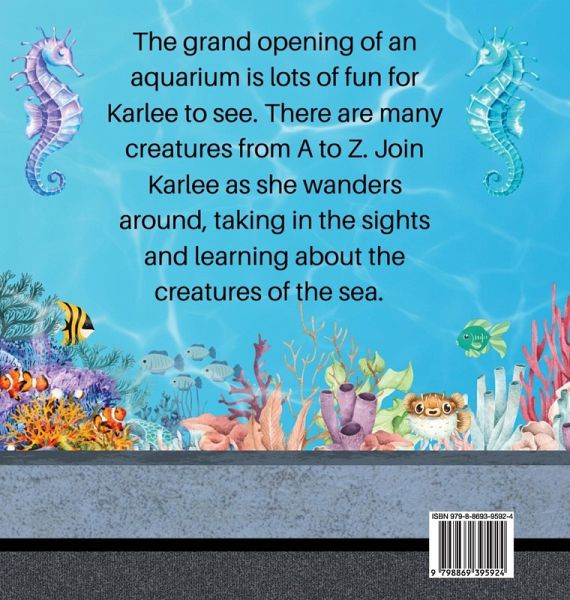 The grand opening of an aquarium is lots of fun for Karlee to see. There are many creatures from A to Z. Join Karlee as she wanders around, taking in the sights and learning about the creatures of the sea.