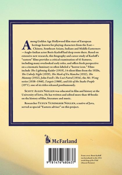 Among Golden Age Hollywood film stars of European heritage known for playing characters from the East--Chinese, Southeast Asians, Indians and Middle Easterners--Anglo-Indian actor Boris Karloff had deep roots there. Based on extensive new research, this biography and career study of Karloff's "eastern" films provides a critical examination of 41 features, including many overlooked early roles, and offers fresh perspective on a cinematic luminary so often labeled a "horror icon." Films include The Lightning Raider (1919), 14 silent films from the 1920s, The Unholy Night (1929), The Mask of Fu Manchu (1932), The Mummy (1932), John Ford's The Lost Patrol (1934), the Mr. Wong series (1938-1940), Targets (1968), and Isle of the Snake People (1971), one of six titles released posthumously.
