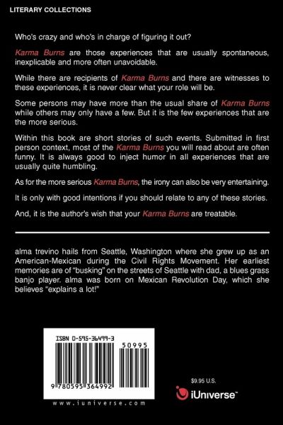 Who's crazy and who's in charge of figuring it out? Karma Burns are those experiences that are usually spontaneous, inexplicable and more often unavoidable. Some persons may have more than the usual share of Karma Burns while others may only have a few. But it is the few experiences that are the more serious. Within this book are short stories of such events. Submitted in first person context, most of the Karma Burns you will read about are often funny. It is always good to inject humor in all experiences that are usually quite humbling. While there are recipients of Karma Burns and there are witnesses to these experiences, it is never clear what your role will be. As for the more serious Karma Burns, the irony can also be very entertaining. It is only with good intentions if you should relate to any of these stories. And, it is the author's wish that your Karma Burns are treatable.