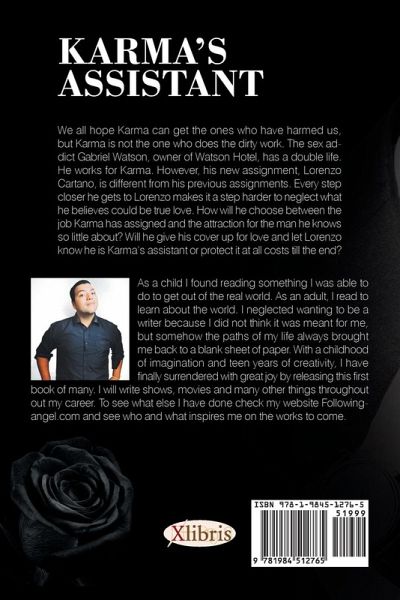 We all hope Karma can get the ones who have harmed us, but Karma is not the one who does the dirty work. The sex addict Gabriel Watson, owner of Watson Hotel, has a double life. He works for Karma. However, his new assignment, Lorenzo Cartano, is different from his previous assignments. Every step closer he gets to Lorenzo makes it a step harder to neglect what he believes could be true love. How will he choose between the job Karma has assigned and the attraction for the man he knows so little about? Will he give his cover up for love and let Lorenzo know he is Karmas assistant or protect it at all costs till the end?