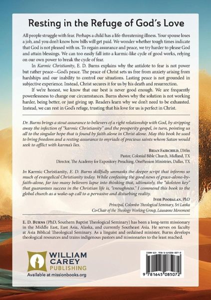 Resting in the Refuge of God's Love All people struggle with fear. Perhaps a child has a life-threatening illness. Your spouse loses a job, and you don’t know how bills will get paid. We wonder whether tough times indicate that God is not pleased with us. To regain assurance and peace, we try harder to please God and attain blessings. We can too easily fall into a karmic-like cycle of good works, relying on our own power to break the cycle of fear. In Karmic Christianity, E. D. Burns explains why the antidote to fear is not power but rather peace— God’s peace. The peace of Christ sets us free from anxiety arising from hardships and our inability to control our situations. Lasting peace is not grounded in subjective experience. Instead, Christ secures it for us by his death and resurrection. If we’re honest, we know that our best is never good enough. We are frequently powerlessness to change our circumstances. Burns shows why the solution is not working harder, being better, or just giving up. Readers learn why we don't need to be exhausted. Instead, we can rest in God’s refuge, trusting that his love for us is perfect in Christ.