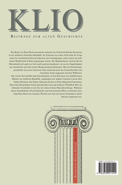 Das Wichtigste im Leben eines römischen Aristokraten war seine Karriere. Im Konkurrenzkampf um Ansehen, Ehre und Ruhm konnte in der römischen Republik nur bestehen, wer von jungen Jahren an eine erfolgreiche politische Laufbahn einschlug, und das heißt: wer sich erfolgreich um die öffentlichen Ämter bewarb. In der mittleren Republik gab es jedoch keine systematische Rangordnung dieser Ämter in Form eines cursus honorum - eine Vereinheitlichung wurde erst mit der lex Villia annalis des Jahres 180 v. Chr. angestrebt. Das Buch von Hans Beck untersucht erstmals den Verlauf politischer Karrieren in Rom vor dieser Regelung.