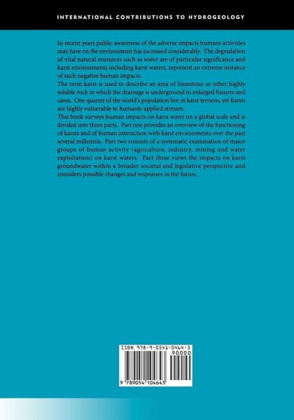 One quarter of the world's population lives in karst terrains, yet karsts are highly vulnerable to stresses caused by human activity. This book surveys human impact on karst water, showing that the increasing pollution of the environment has, to a great extent, spoiled sensitive karst ecosystems. This text examines such consequences and offers proposals for future solutions and strategies. Part One provides an overview of the functioning of karsts and of human interaction with karst environments over several millennia. Part Two consists of a systematic examination of the major areas of human activity affecting karst waters, such as agriculture, industry, mining and water exploitation. Finally, Part Three views the effects on karst groundwater within a broader societal and legislative perspective and considers possible changes of methodology and approach.