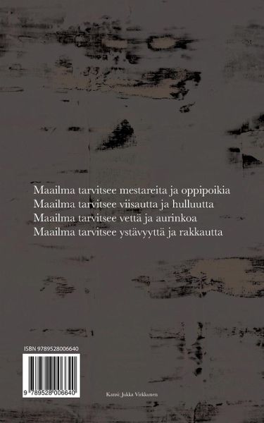 Karumaa - runoja karusta ja rujosta maasta "Maailma tarvitsee mestareita ja oppipoikia Maailma tarvitsee viisautta ja hulluutta Maailma tarvitsee vettä ja aurinkoa Maailma tarvitsee ystävyyttä ja rakkautta"
