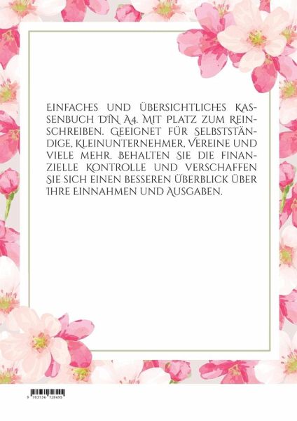Einfaches und übersichtliches Kassenbuch DIN A4. Mit Platz zum Reinschreiben. Geeignet für Selbstständige, Kleinunternehmer, Vereine und viele mehr. Behalten Sie die finanzielle Kontrolle und verschaffen Sie sich einen besseren Überblick über Ihre Einnahmen und Ausgaben.
