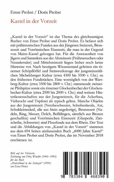 "Kastel in der Vorzeit" ist das Thema des gleichnamigen Buches von Ernst Probst und Doris Probst. Es befasst sich mit prähistorischen Funden aus der Jüngeren Steinzeit, Bronzezeit und Vorrömischen Eisenzeit, die man in der Gegend von Mainz-Kastel geborgen hat. Für die Anwesenheit von Jägern und Sammlern aus der Altsteinzeit (Frühmenschen oder Neandertaler) und Mittelsteinzeit liegen bisher noch keine Hinweise vor. Nach heutigem Wissensstand gehören ein tönerner Schöpflöffel und Steinwerkzeuge der jungsteinzeitlichen Michelsberger Kultur (etwa 4300 bis 3500 v. Chr.) zu den frühesten Fundstücken. Eine womöglich von der Wartberg-Kultur (etwa 3500 bis 2800 v. Chr.) stammende steinerne Pfeilspitze sowie ein tönerner Glockenbecher der Glockenbecher-Kultur (etwa 2500 bis 2000 v. Chr.) sind weitere Hinterlassenschaften aus der Jungsteinzeit, für die Ackerbau, Viehzucht und Töpferei als typisch gelten. Manche Objekte aus der Jungsteinzeit (Netzbeschwerer, Scheibenkeule, Axt, Schuhleistenkeil, alle aus Stein angefertigt), Bronzezeit (Nadeln, Ring, Messer, Dolch, Beilklingen, sämtlich aus Bronze geschaffen) und Vorrömischen Eisenzeit (Glasperle, Zierscheibe, Schwerter) sind Flussfunde aus dem Rhein. Der Text und die Abbildungen von "Kastel in der Vorzeit" stammen aus dem 694 Seiten umfassenden Buch "6000 Jahre Kastel" von Ernst Probst, und Doris Probst das im November 2018 erschienen ist.
